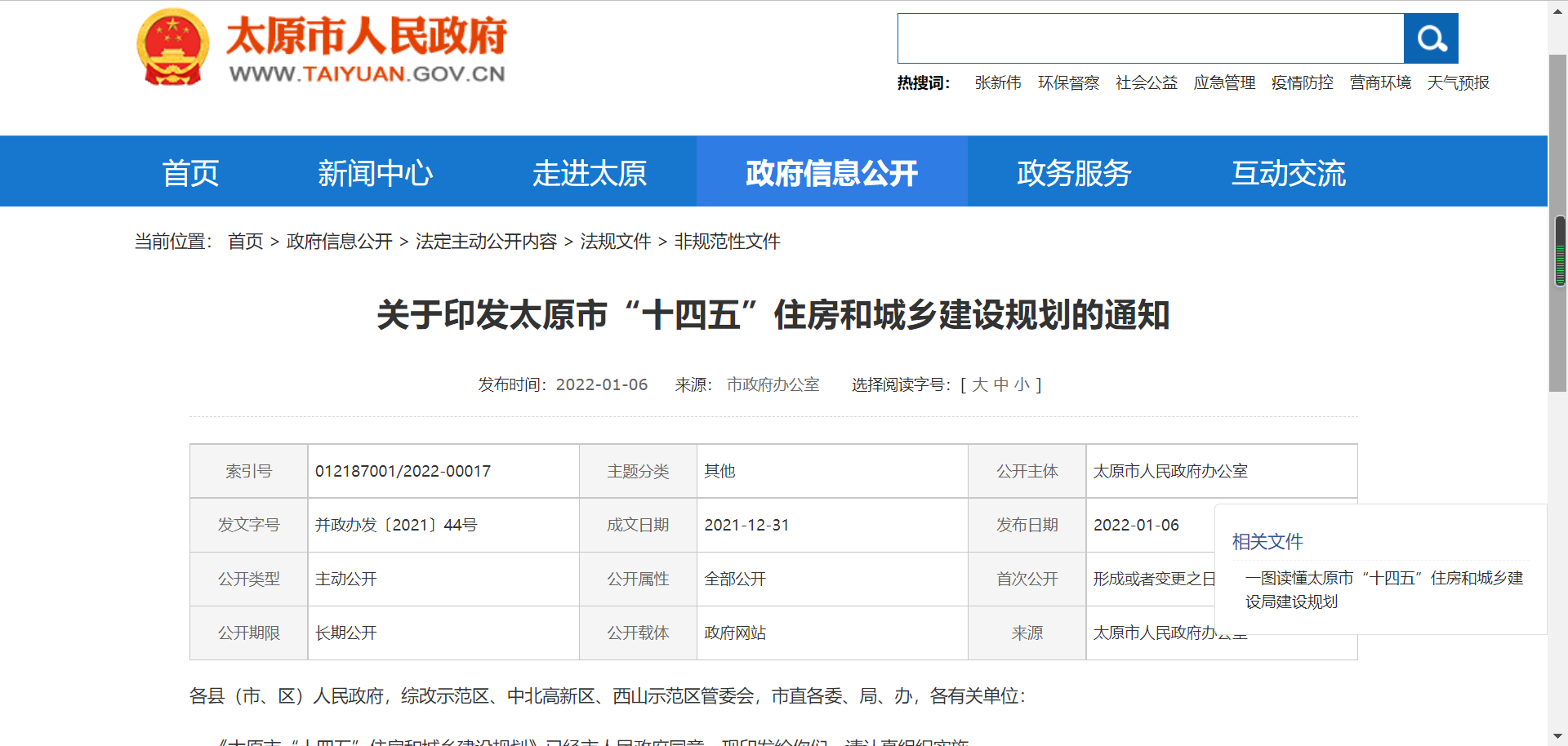 點(diǎn)擊藍(lán)字關(guān)注我們泰華遠(yuǎn)大做最精心的裝配式建筑企業(yè),成就精彩員工夢想。太原市人民政府關(guān)于印發(fā)“十四五”住房和城鄉(xiāng)建設(shè)規(guī)劃的通知并政辦發(fā)〔2021〕44號(hào)各縣(市、區(qū))人民政府,綜改示范區(qū)、中北高新區(qū)、西山示范